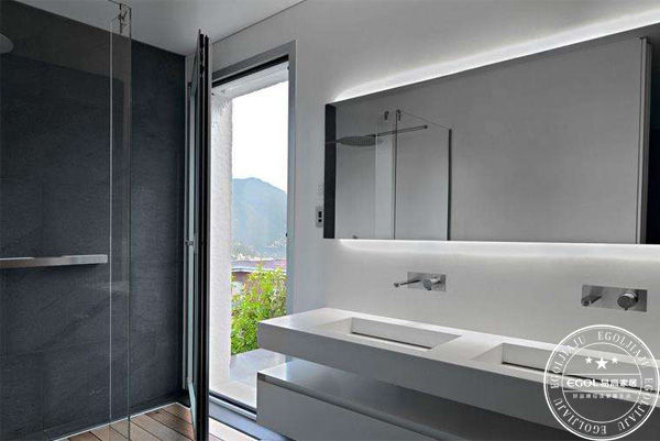 1. 衛(wèi)生間洗漱臺(tái)設(shè)計(jì)。清晨起床大多都會(huì)先進(jìn)行一番洗漱,人數(shù)較多的家庭一般都會(huì)選擇排隊(duì)挨個(gè)進(jìn)行,甚至有些家庭因?yàn)閷?shí)在來不及選擇在廚房或者陽(yáng)臺(tái)洗漱。針對(duì)這種情況,在裝修時(shí)我們可以定制帶有兩個(gè)洗漱盆的洗漱臺(tái)。兩個(gè)小小的洗漱盆和兩個(gè)水龍頭,可以兩個(gè)人同時(shí)使用,既不會(huì)浪費(fèi)空間,又能減少整個(gè)家庭排隊(duì)洗漱時(shí)間。在洗漱臺(tái)上可以選擇定制鏡柜,這樣就在解決整理儀容問題的同時(shí),也解決了全家成員牙膏牙刷護(hù)膚等個(gè)人用品的收納問題。另外,在鏡柜的上方建議安裝鏡前燈。經(jīng)常在衛(wèi)生間化妝的女士應(yīng)該都知道,照鏡子時(shí),頂上的燈光剛好被人體擋住,有了鏡前燈,不管是女士們化妝還是男士剃胡須,都會(huì)更加方便。